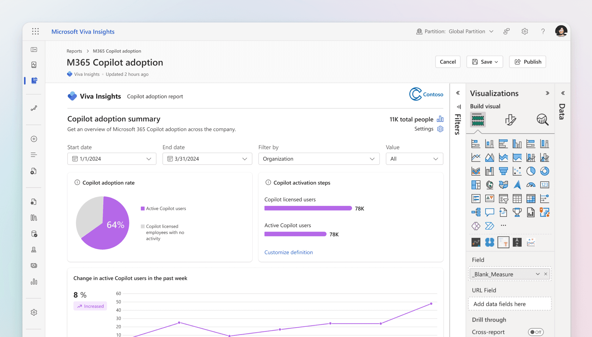 Enabled faster customization and sharing of Copilot Analytics reports within Viva Insights